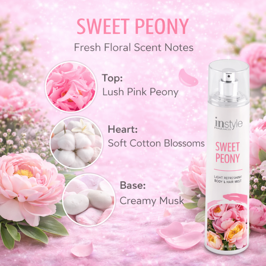 Sweet Peony is the perfect fragrance for anyone who loves light floral body sprays, peony perfumes, and soft musky scents that feel fresh, feminine, and timeless.